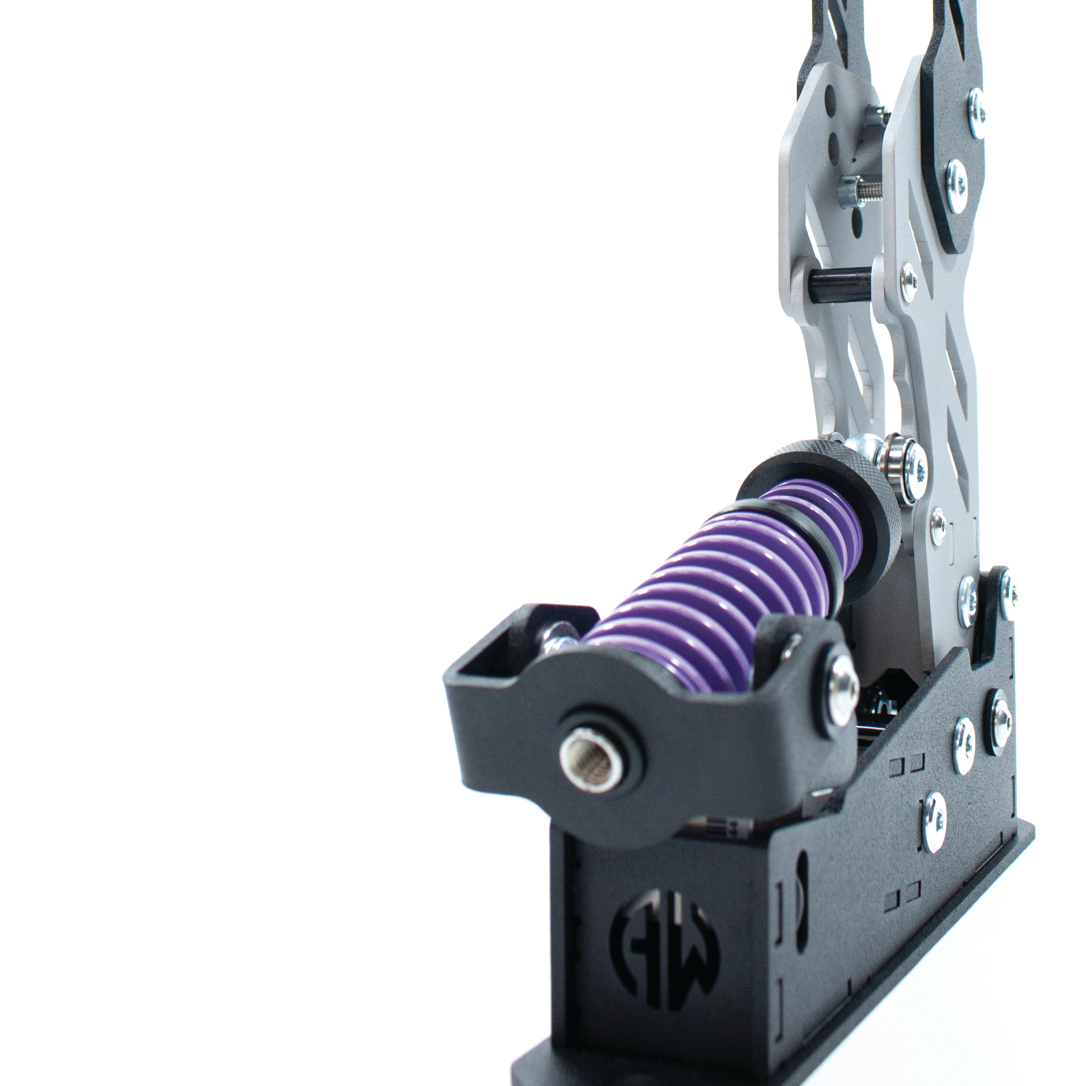 Der dreistufige Verstellbereich des Federmechanismuskopfes ermöglicht eine präzise Einstellung der Druckkraft. Dieses integrierte zweistufige Federsystem bietet ein breites Spektrum an Widerstandskräften. Dank dieses Designs erhält der Benutzer die volle Kontrolle und kann die Bremse an seine individuellen Vorlieben und die Besonderheiten verschiedener Simulationen anpassen.