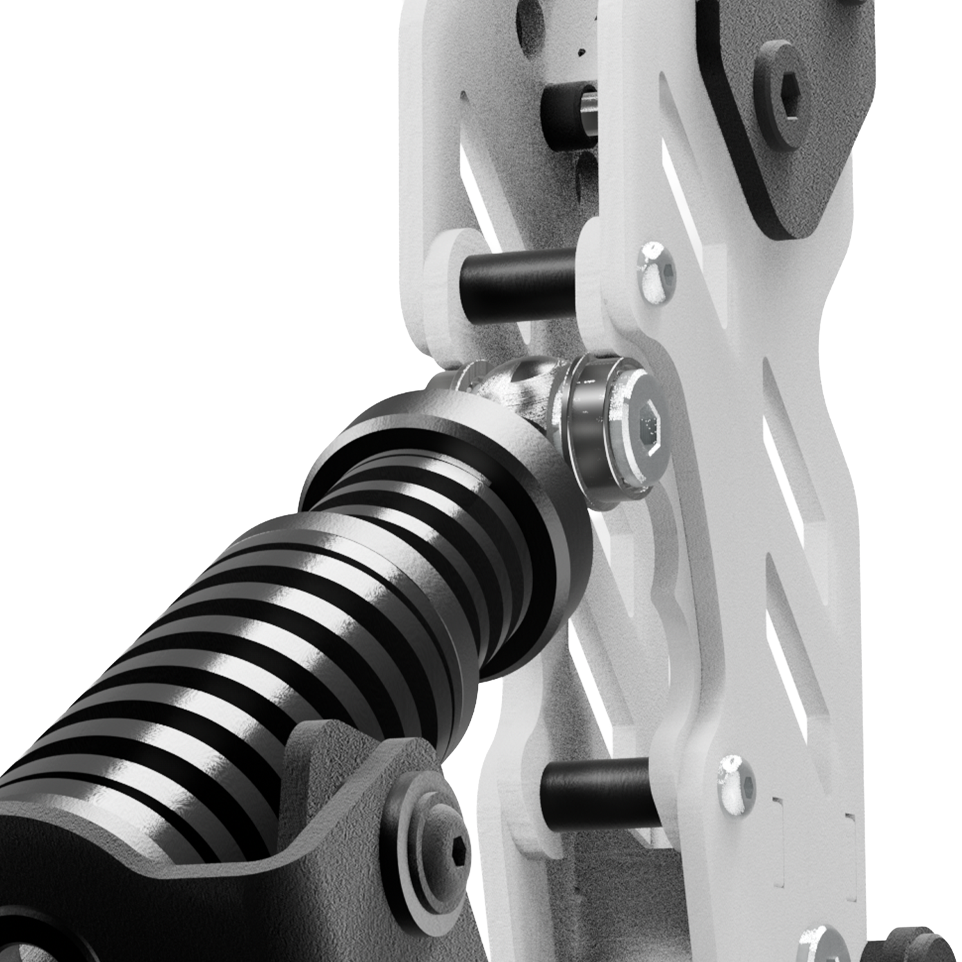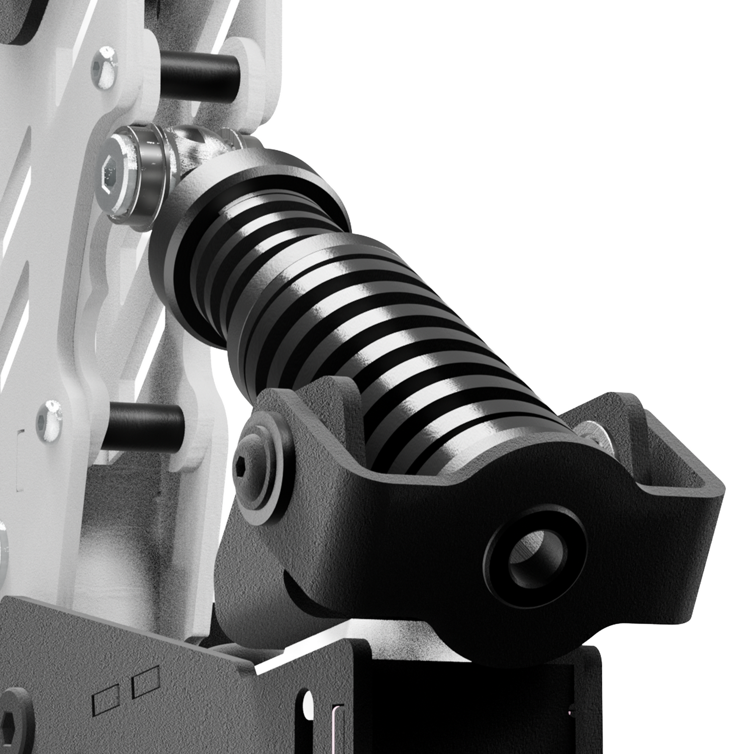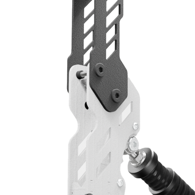 Trzystopniowy zakres regulacji głowicy mechanizmu sprężyn pozwala na precyzyjne dostosowanie siły nacisku. Ten zintegrowany dwuetapowy system sprężyn oferuje szeroki zakres siły oporu. Dzięki tej konstrukcji użytkownicy zyskują pełną kontrolę i mogą dostosować hamulec do swoich indywidualnych preferencji oraz specyfiki różnych symulacji.